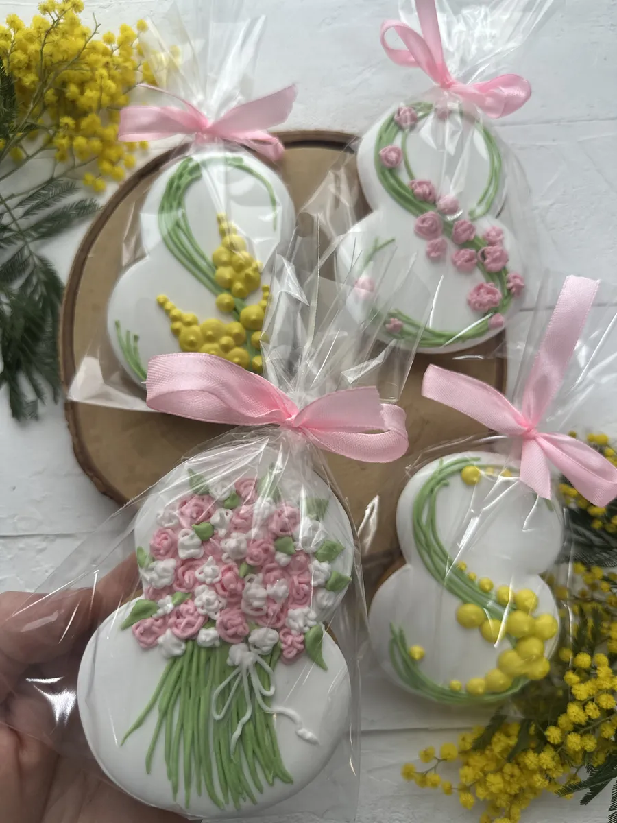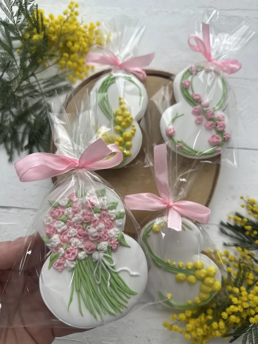Подарочный набор красивых имбирных пряников на 8 марта - это сладкий подарок как для детей, так и для взрослых. В комплекте 4 пряника ручной работы высотой 11 см. Набор сладостей отлично подойдет для угощения на утренник в детский сад, школу, на праздничный стол дома и на работе. Замечательный вариант корпоративного подарка для женщин на Международный женский день. Наши медовые пряники в глазури невероятно ароматные. Вкусный бокс и оригинальный набор - именно то, что нужно, если вы не знаете, какой сделать подарок на восьмое марта. У нас есть разные варианты, вы обязательно найдете свой идеальный набор! Подойдет для подарка любой женщине, подруге, девушке, любимой, коллеге, сестре, девочке, племяннице, внучке, дочке, жене, маме, бабушке, учительнице, учителю, преподавателю, начальнице, директору. Глазированные пряники имеют натуральный состав и изготовлены нашими кондитерами вручную. Каждый пряник упакован в индивидуальный герметичный пакет, что гарантирует его свежесть. Продукт сертифицирован.