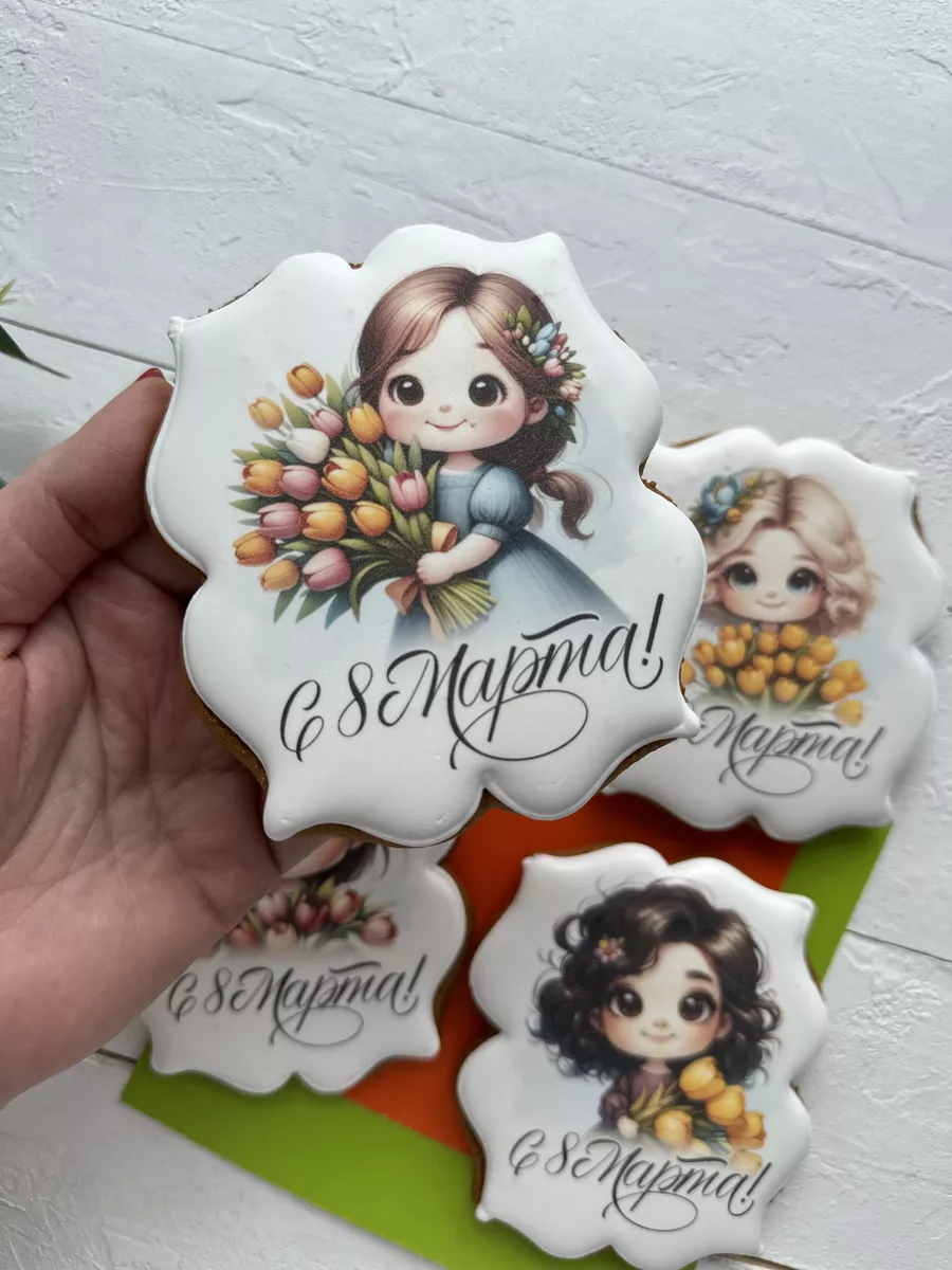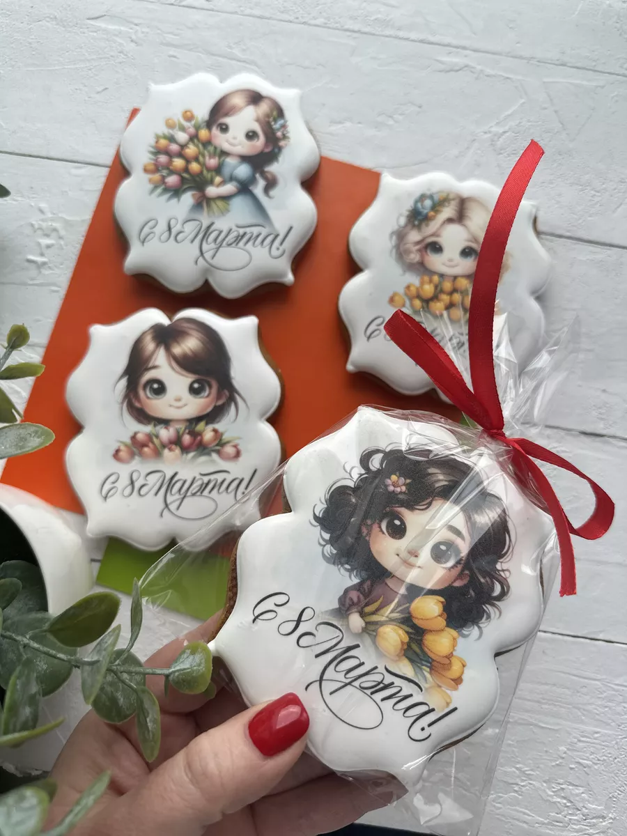 Подарочный набор красивых имбирных пряников на 8 марта - это сладкий подарок как для детей, так и для взрослых. Набор сладостей отлично подойдет для угощения на утренник в детский сад, школу, на праздничный стол дома и на работе. Замечательный вариант корпоративного подарка для женщин на Международный женский день. Наши медовые пряники в глазури невероятно ароматные. Вкусный бокс и оригинальный набор - именно то, что нужно, если вы не знаете, какой сделать подарок на восьмое марта. У нас есть разные варианты, вы обязательно найдете свой идеальный набор! Подойдет для подарка любой женщине, подруге, девушке, любимой, коллеге, сестре, девочке, племяннице, внучке, дочке, жене, маме, бабушке, учительнице, учителю, преподавателю, начальнице, директору. Глазированные пряники имеют натуральный состав и изготовлены нашими кондитерами вручную. Каждый пряник упакован в индивидуальный герметичный пакет, что гарантирует его свежесть. Продукт сертифицирован.