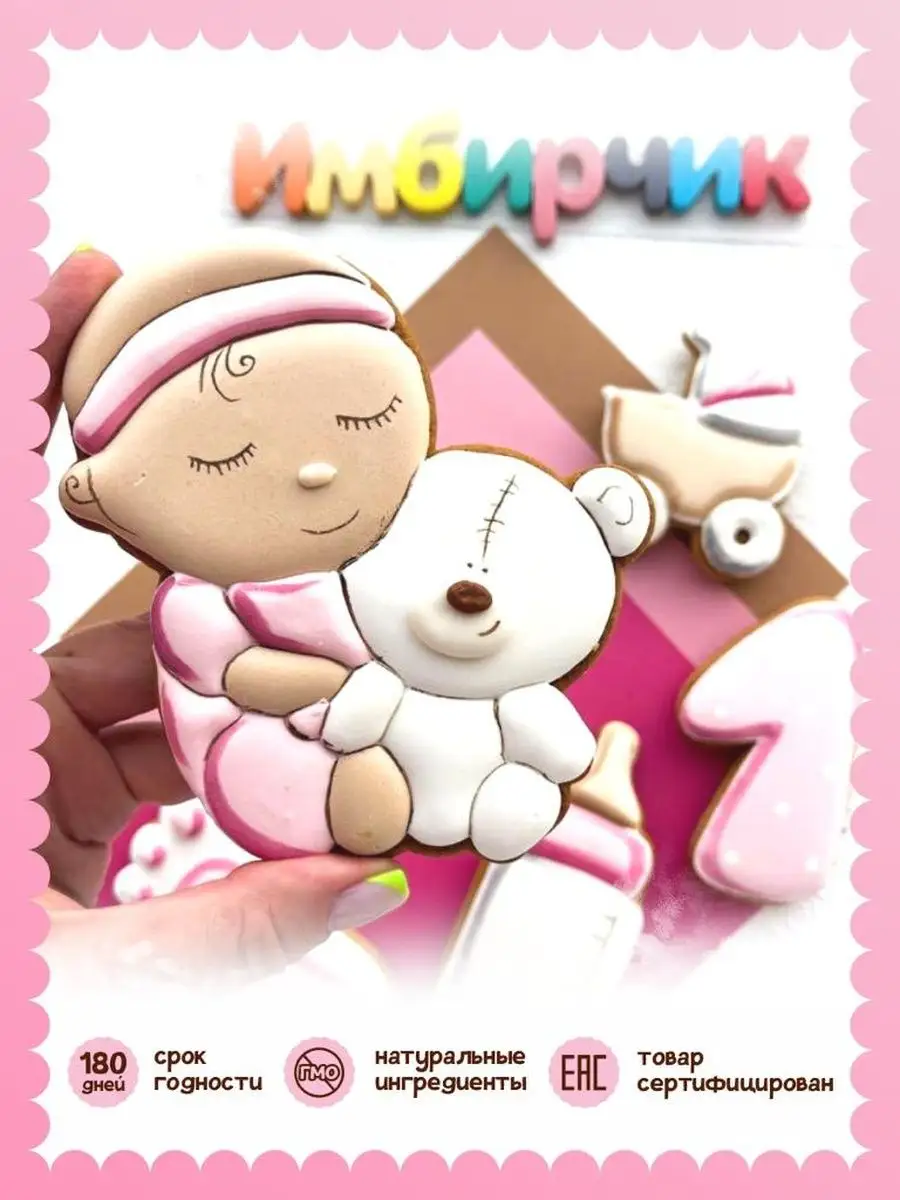 равнодушным никого! Это отличное вкусное угощение для кэнди бара. В наборе 5 пряников топперов в торт с красочной малышкой в розовых тонах. Наши пряники в глазури порадуют Вас приятным вкусом и ароматом, идеальное дополнение к чаю, кофе, какао, молоку. Праздничные пряники имеют натуральный состав и изготовлены нашими кондитерами вручную. Размер пряников на год дочери: 8-12,5 см высота, 6-10 см ширина. Каждый пряник упакован в индивидуальный герметичный пакет, что гарантирует его свежесть. Продукт сертифицирован.