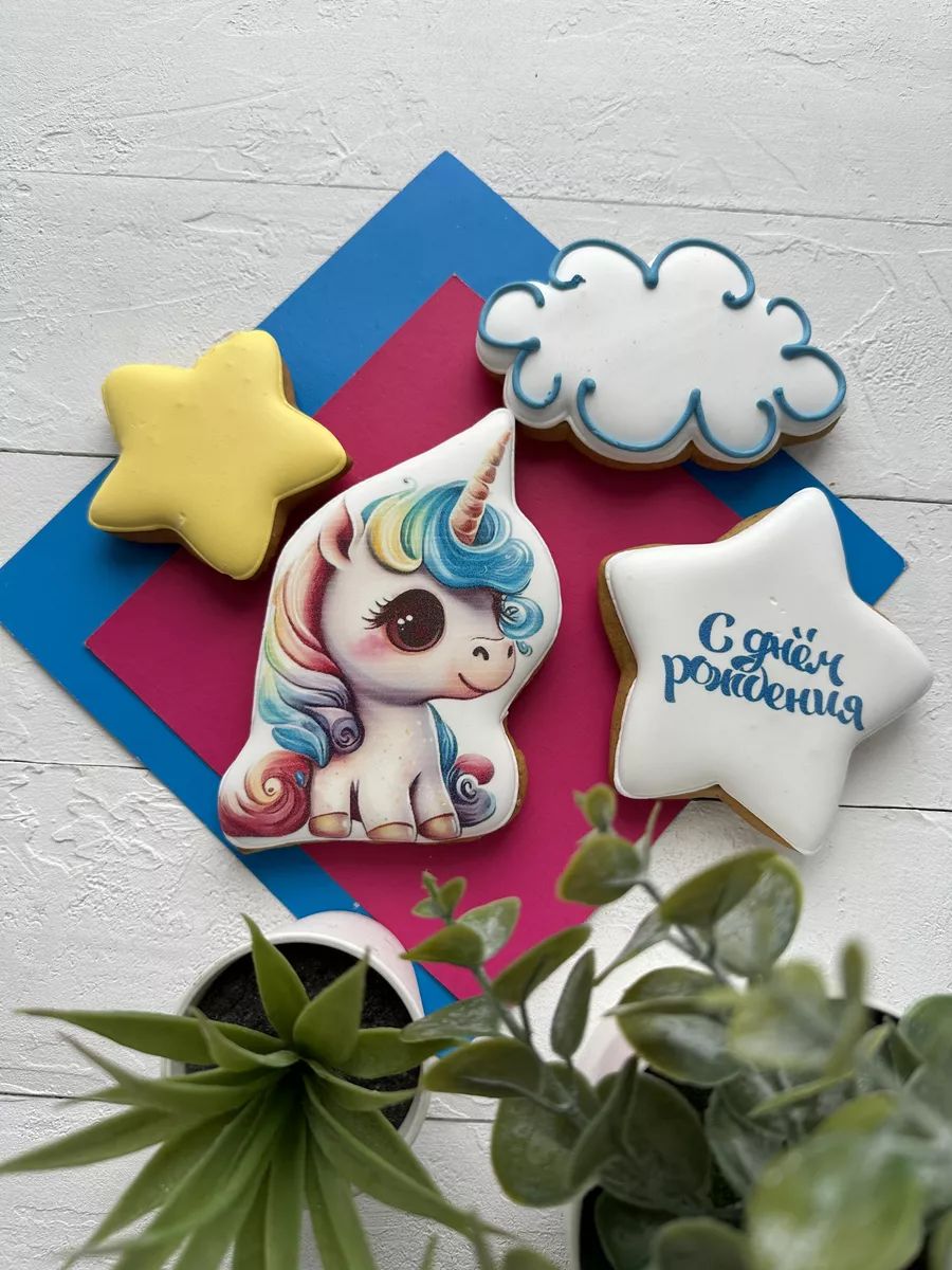 Если вы хотите сделать что-то особенное для вашей дочки или сына, украсьте торт пряниками с изображением сказочного Единорожика, звездочек и облачка. Это будет не только оригинальным дополнением к вашему торту, но и приятным сюрпризом для гостей. Кроме того, такие пряники на палочке станут ярким украшением вашего праздничного стола и понравятся как детям, так и взрослым.
