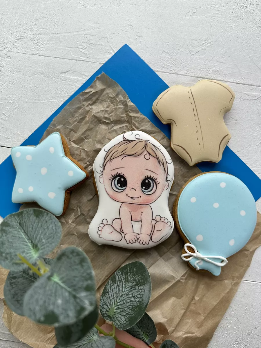 Набор детских расписных имбирных пряников с днем рождения ребенка на один 1 год на палочке станет отличным украшением для торта или праздничного стола на День рождения сына и дочки! Яркие пряники на один 1 годик также могут служить интересным самостоятельным подарком для мальчика и девочки. В наборе 4 пряника топпера в торт с красочными малышом в бежевых и голубых тонах. Количество пряников в каждом комплекте прописано в характеристиках товара. Наши пряники в глазури порадуют Вас приятным вкусом и ароматом, идеальное дополнение к чаю, кофе, какао, молоку. Праздничные пряники имеют натуральный состав и изготовлены нашими кондитерами вручную. Размер пряников на год: 8-12,5 см высота, 6-10 см ширина. Каждый пряник упакован в индивидуальный герметичный пакет, что гарантирует его свежесть