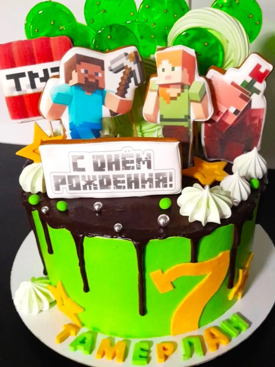 Набор расписных имбирных пряников с днем рождения ребенка Minecraft на палочке для торта в виде фигурок любимых героев станет отличным украшением для торта или праздничного стола на День рождения сына или дочки! Яркие пряники Майнкрафт также могут служить интересным самостоятельным подарком для мальчика и девочки. В наборе 5 пряников топперов в торт с красочными персонажами игры. Наши пряники в глазури порадуют Вас приятным вкусом и ароматом, идеальное дополнение к чаю, кофе, какао, молоку. Праздничные пряники имеют натуральный состав и изготовлены нашими кондитерами вручную. Размер пряников 8-12 см высота, 6-10 см ширина. Каждый пряник упакован в индивидуальный герметичный пакет, что гарантирует его свежесть. Продукт сертифицирован. Пряники на торт имбирные детские с днем рождения Майнкрафт украшения для торта для мальчика, девочки
