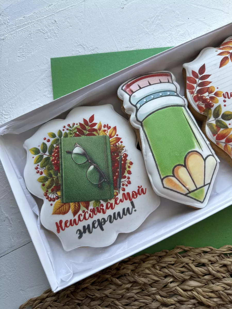 Подарочный набор пряников - оригинальная вкусняшка для детей и очень интересный подарок на первое сентября ученикам начальной и средней школы. Порадуйте свою маленькую сестру или брата, племянницу или племянника, крестницу или крестника, внучку или внука этим вкусным набором сладостей. Это отличный вариант подарка на целый класс и для классного руководителя, такой набор можно подарить учителю. Расписные праздничные пряники имеют натуральный состав и изготовлены нашими кондитерами вручную. Каждый пряник упакован в индивидуальный герметичный пакет, что гарантирует его свежесть, набор перевязан яркой ленточкой, что делает этот подарок особенно красивым. Продукт сертифицирован.