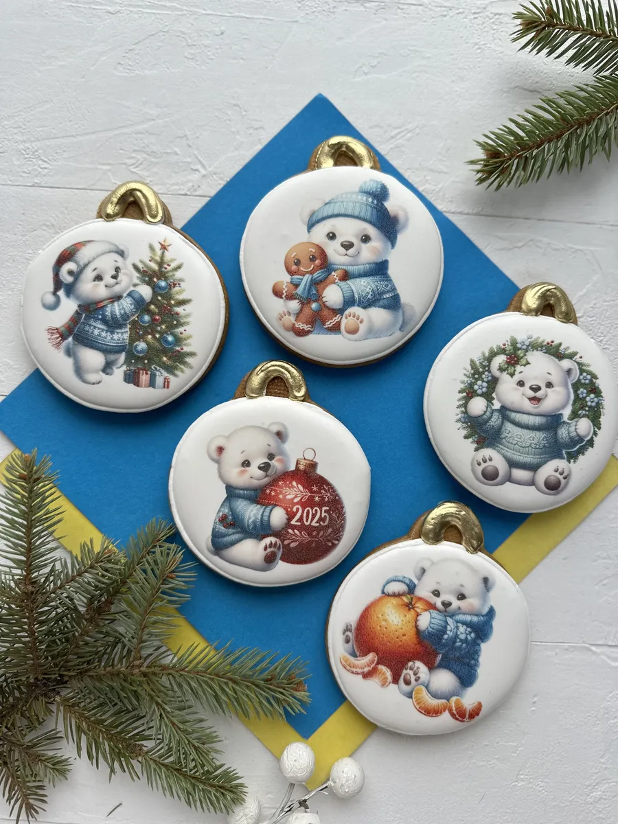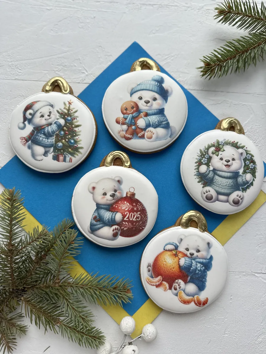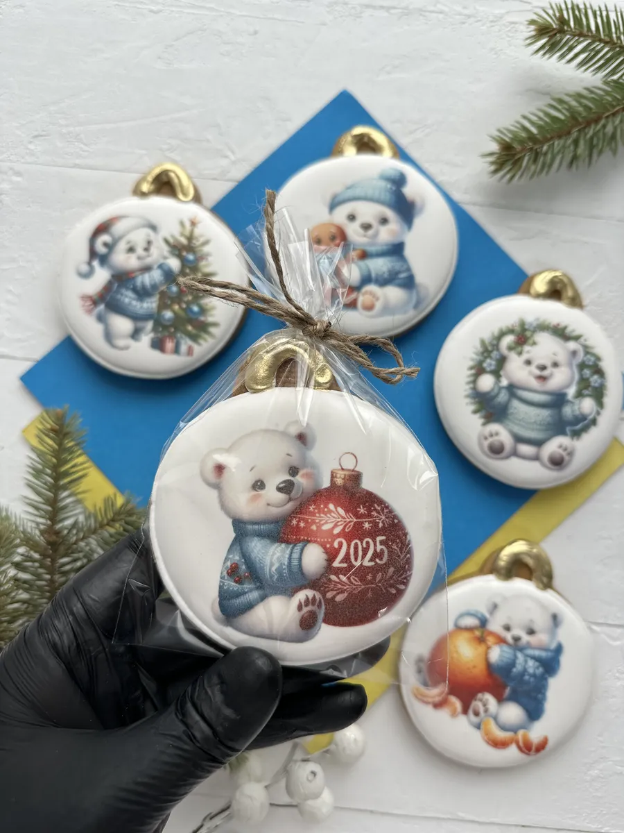 Подарочный набор новогодних имбирных пряников на 2025 год - это сладкий подарок как для детей, так и для взрослых. Набор сладостей в виде елочных игрушек, украшенных пищевым золотом, отлично подойдет для угощения на Новый год в детский сад, школу, на праздничный стол дома и на работе. Этих мишек можно повесить на елку, как новогодние украшения! Наши пряники в глазури порадуют Вас приятным вкусом и ароматом, идеальное дополнение к чаю, кофе, какао, молоку. Вкусный бокс и оригинальный набор с белым мишкой - именно то, что нужно, если вы не знаете, какой сделать подарок в Новогоднюю ночь или Рождество. Подойдет для новогоднего подарка подруге, другу, коллеге, сестре, брату, детям, племяннице, племяннику, внучке, внуку, сыну, дочке, жене, мужу, маме, папе, бабушке, дедушке, учителю, преподавателю, начальнику, директору. Пряники имеют натуральный состав и изготовлены нашими кондитерами вручную. Каждый пряник упакован в индивидуальный герметичный пакет, что гарантирует его свежесть, а также перевязан атласной лентой, поэтому шарики можно дарить по отдельности. Продукт сертифицирован.