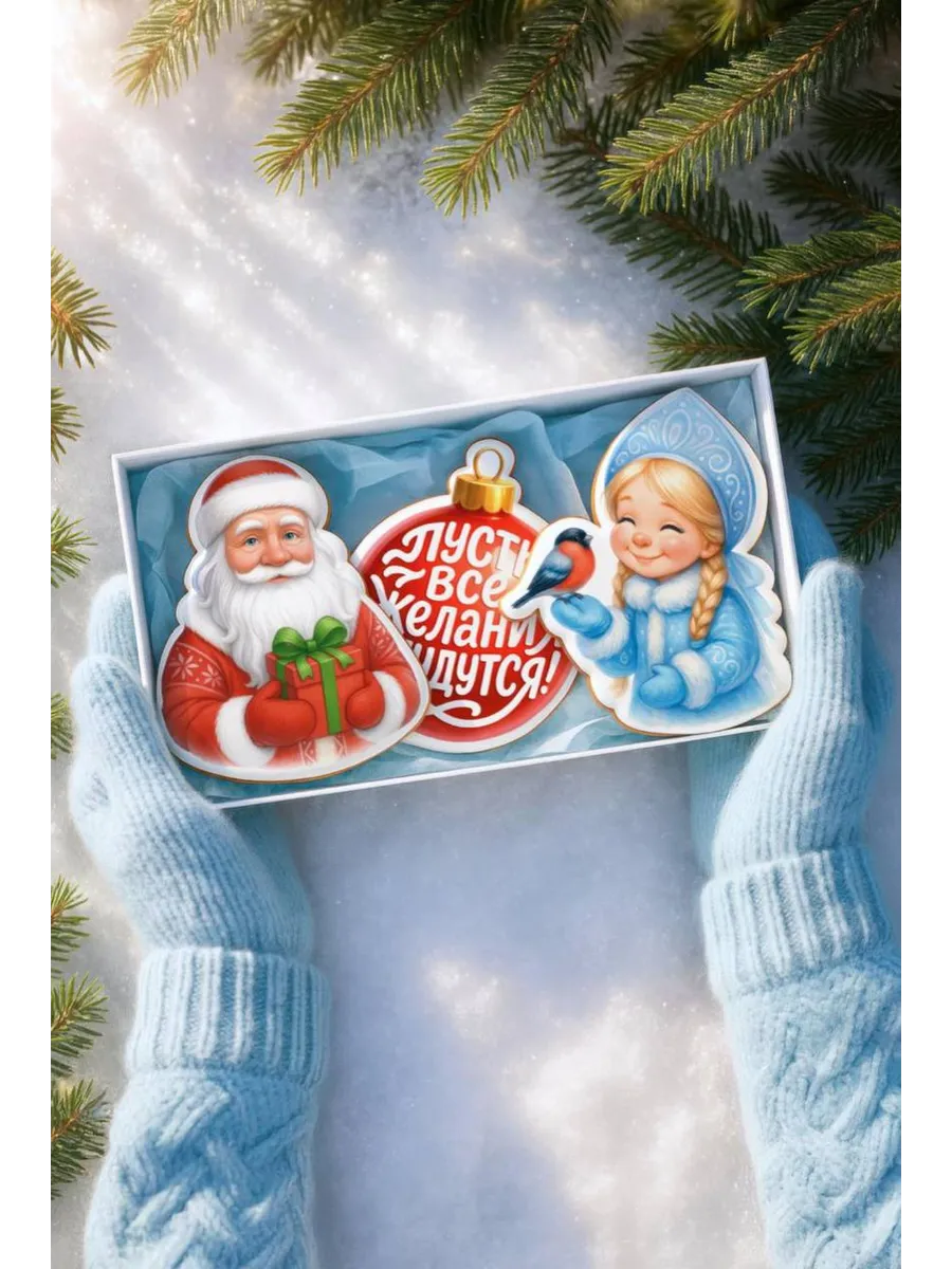Подарочный набор новогодних имбирных пряников c Дедом Морозом и Снегурочкой на 2026 год - это сладкий подарок как для детей, так и для взрослых. Набор сладостей отлично подойдет для угощения на Новый год в детский сад девочке и мальчику, школу сестре или брату, на праздничный стол дома родным маме и папе и на работе коллегам, начальнику. Наши пряники в глазури порадуют Вас приятным вкусом и ароматом. Вкусный бокс и оригинальный набор дочке или сыну - именно то, что нужно, если вы не знаете, какой сделать подарок в Новогоднюю ночь или Рождество для друга и подруги. Подойдет для новогоднего подарка племяннице, племяннику, внучке, внуку, жене, мужу, бабушке, дедушке, учителю, преподавателю, директору. Глазированные пряники имеют натуральный состав и изготовлены нашими кондитерами вручную. Каждый пряник упакован в индивидуальный герметичный пакет, что гарантирует его свежесть. Продукт сертифицирован.