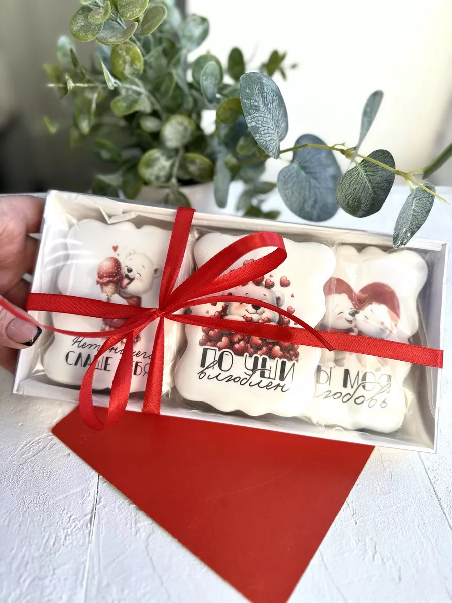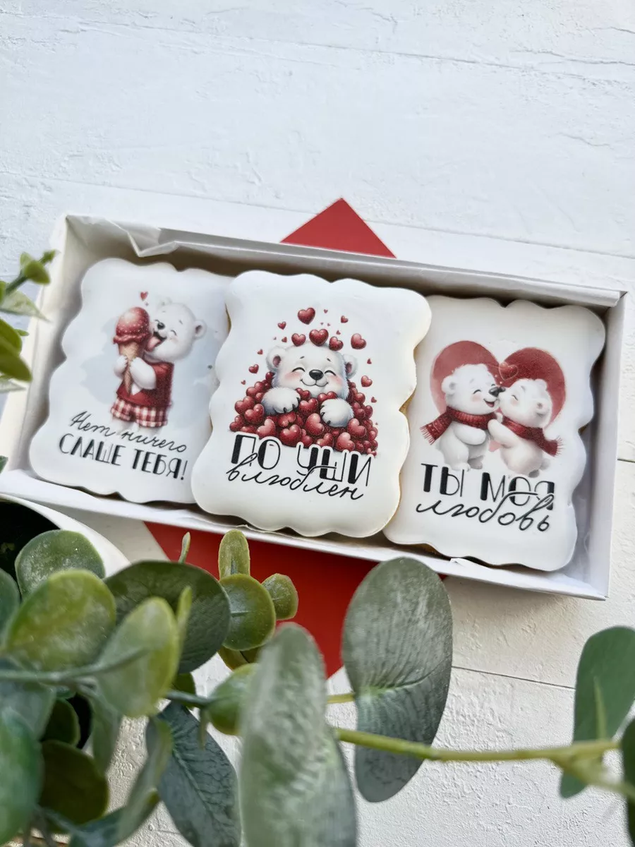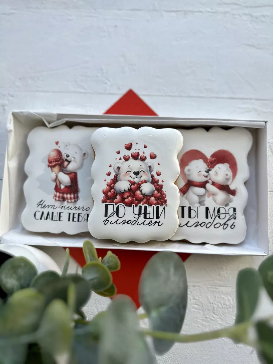 День всех влюбленных, годовщина свадьбы, дата знакомства - это замечательный повод, чтобы подарить своей второй половинке что-то очень милое и необычное. Подарочный набор вкусных имбирных пряников - идеальный презент для любимой или любимого. Валентинки пряники в виде милых мишек с забавными надписями порадуют любого. Наши пряники в глазури с цветной печатной картинкой удивят Вас приятным вкусом и ароматом. Вкусный бокс и оригинальный сладкий набор - именно то, что нужно, если вы не знаете, какой сделать подарок на День святого Валентина или на любую другую памятную для вас дату. Подойдет для подарка девушке, парню, мужу, жене. Глазированные пряники имеют натуральный состав и изготовлены нашими кондитерами вручную. Каждый пряник упакован в индивидуальный герметичный пакет, что гарантирует его свежесть. Продукт сертифицирован.