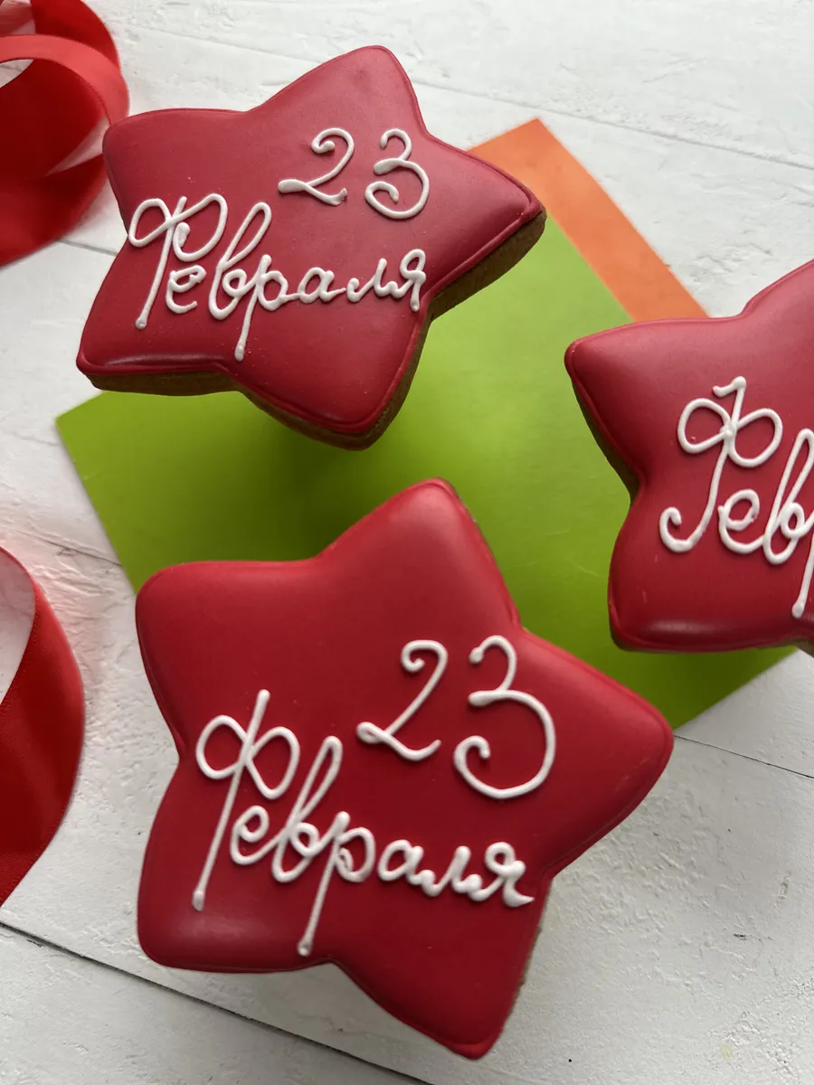 Подарочный набор имбирных пряников на 23 февраля - прекрасный сладкий подарок как для детей, так и для мужчин. Идеальный вариант для подарка в школу или детский сад, а также корпоративный подарок сотрудникам и коллегам на День защитника Отечества. Наши медовые пряники в глазури невероятно ароматные. Вкусный и оригинальный бокс - именно то, что нужно, если вы собираете школьные презенты или подарки в садик мальчикам. Подойдет для подарка сыну, внуку, крестнику или брату. Можно подарить директору, начальнику, другу, папе, дедушке. Глазированные пряники имеют натуральный состав и изготовлены нашими кондитерами вручную. Каждый пряник упакован в индивидуальный герметичный пакет, что гарантирует его свежесть. Размер звездочек - 9 см, ручная роспись. Продукт сертифицирован.