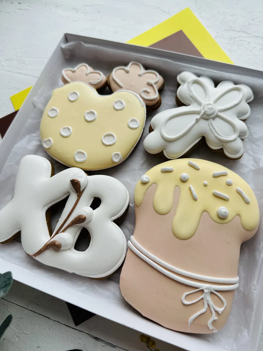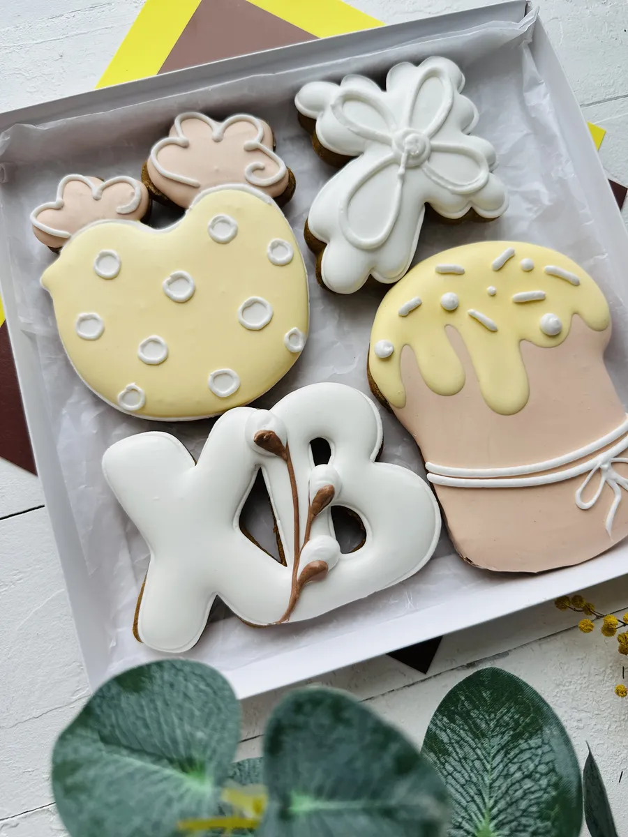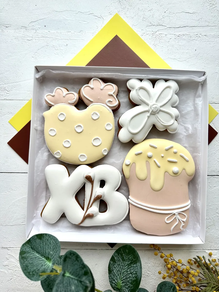 Набор глазированных имбирных пряников ручной работы в коробке с лентой станут отличным подарком друзьям, родителям, детям на Пасху! Красочные пасхальные пряники - лучший презент любимым друзьям и родным. Пасхальный набор пряников отлично подойдет для подарка сыну или дочке, а также внуку или внучке. Ароматные пряники моментально тают во рту, выглядят очень аппетитно и порадуют как детей, так и взрослых за праздничным чаепитием. Это прекрасный пасхальный декор. Расписные фигурные пряники имеют натуральный состав и изготовлены нашими кондитерами вручную. Каждый пряник упакован в индивидуальный герметичный пакет, что гарантирует его свежесть. Набор обернут в ударопрочную плёнку, плюс дополнительная упаковка из гофрокороба, это обеспечивает сохранность пряников при доставке. Подарочная коробка с прозрачной крышкой 20х20х4 см перевязана ленточкой. Внутри пергамент. В сладком боксе 4 ярких пряников. Эта вкусняшка порадует как любого ребенка, брата, сестру, так и взрослого папу, маму, бабушку или дедушку. Понравится и коллегам на работе, мужу или жене, другу и подруге. Продукт сертифицирован