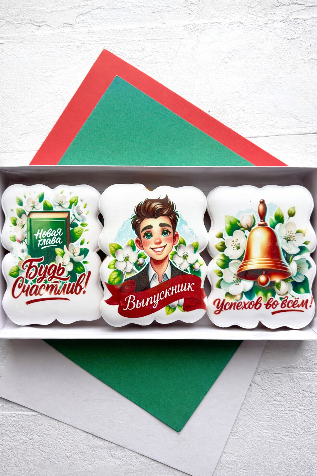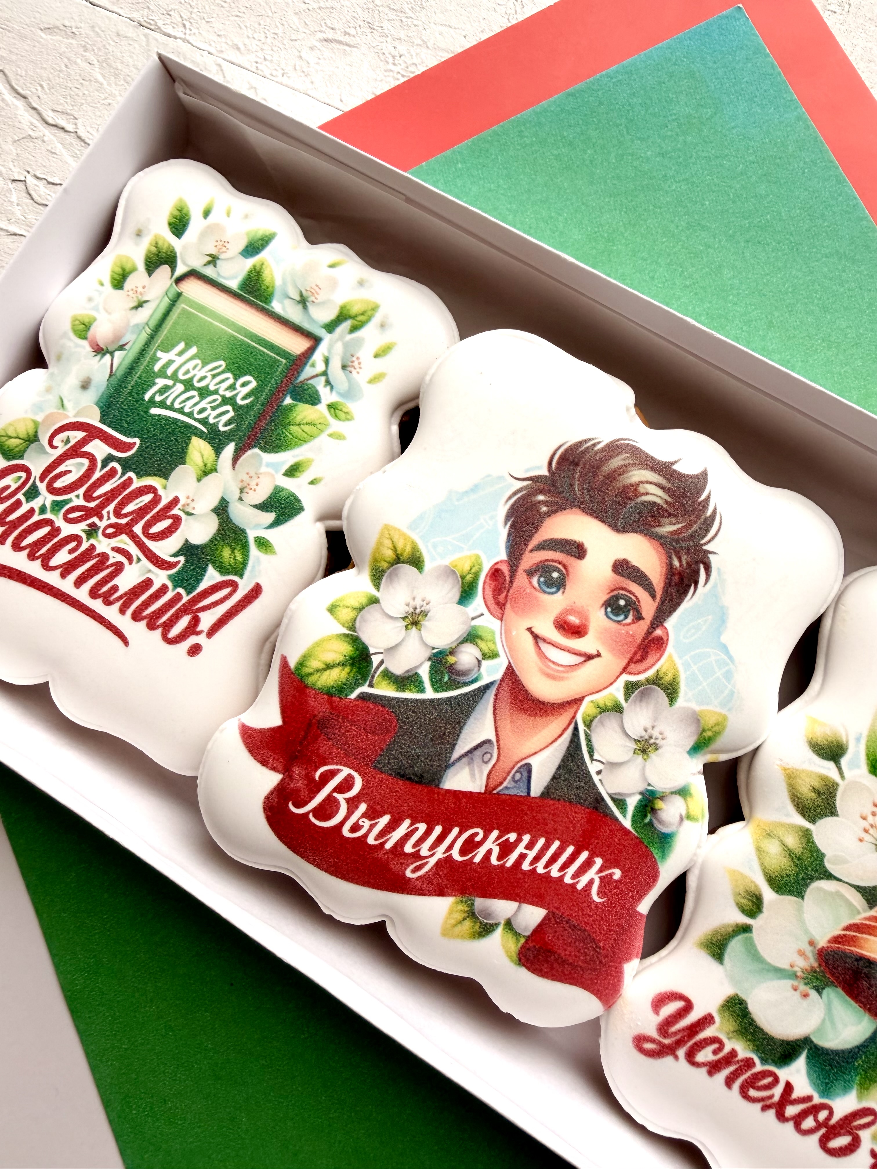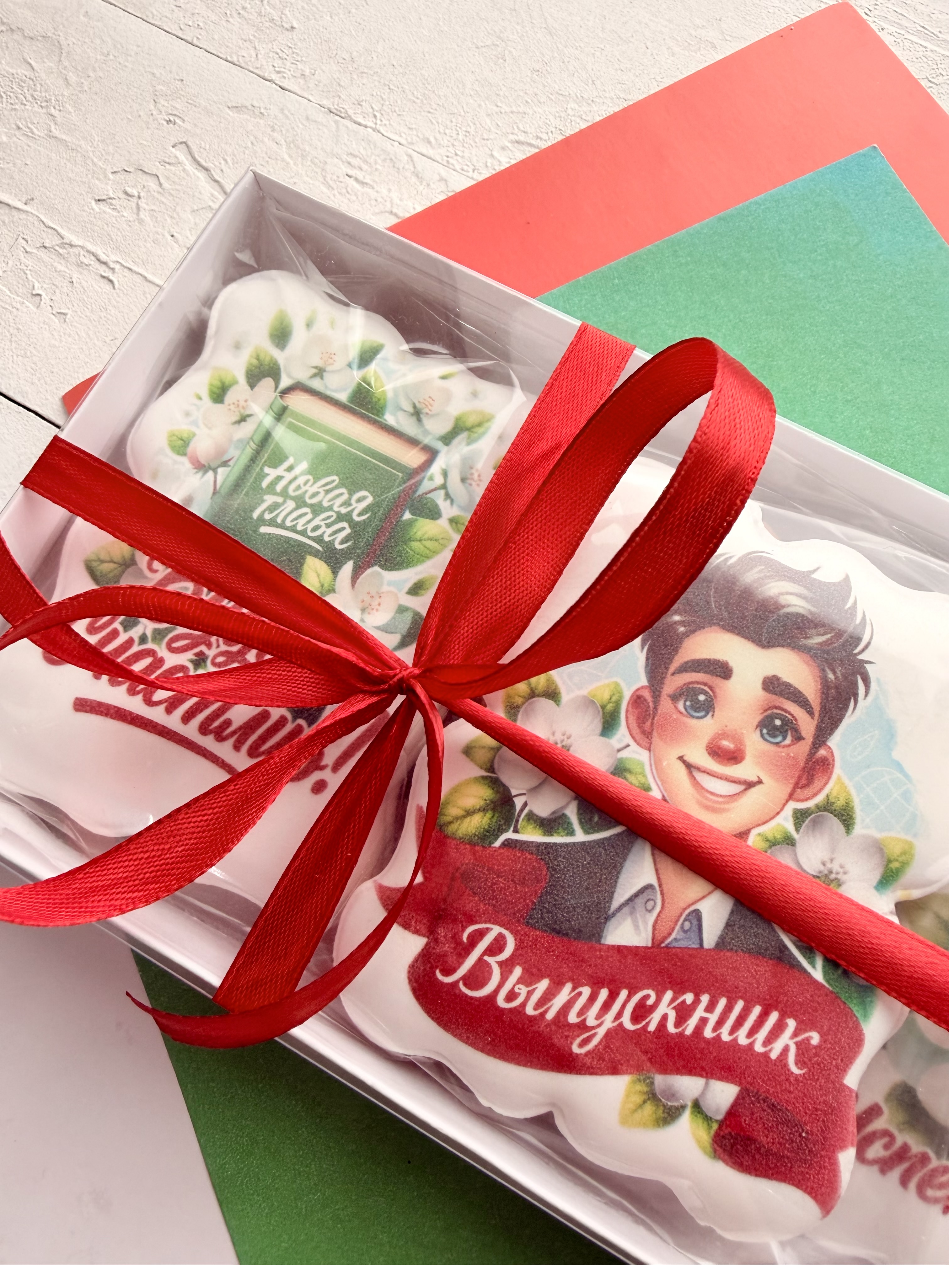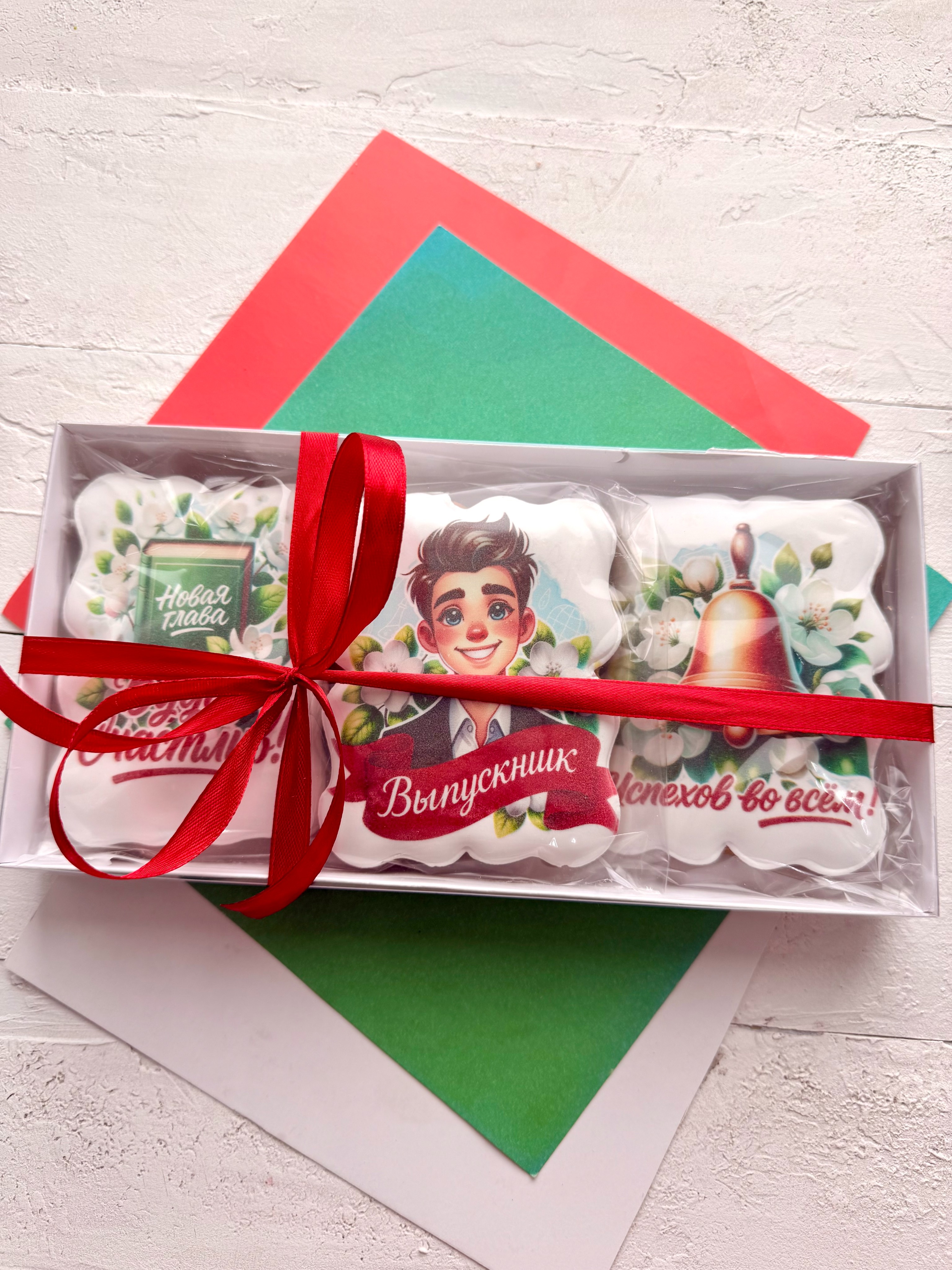 Набор глазированных имбирных пряников ручной работы в коробке с лентой станут отличным подарком детям 9 и 11 на Выпускной! Красочные пряники - лучший презент любимым друзьям и родным. Пряничный набор отлично подойдет для подарка сыну или дочке, а также внуку или внучке. Ароматные пряники моментально тают во рту, выглядят очень аппетитно и порадуют как детей, так и взрослых за праздничным чаепитием. Расписные фигурные пряники имеют натуральный состав и изготовлены нашими кондитерами вручную. Каждый пряник упакован в индивидуальный герметичный пакет, что гарантирует его свежесть. Набор обернут в подаропрочную коробку с атласной лентой, плюс дополнительная упаковка из гофрокороба, это обеспечивает сохранность пряников при доставке. Подарочная коробка с прозрачной крышкой 24х14х4 см перевязана ленточкой. Внутри пергамент. В сладком боксе 3 ярких пряника.