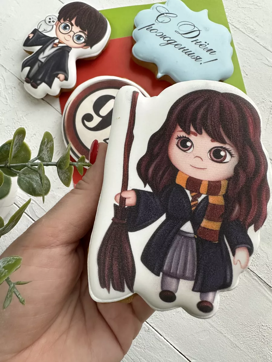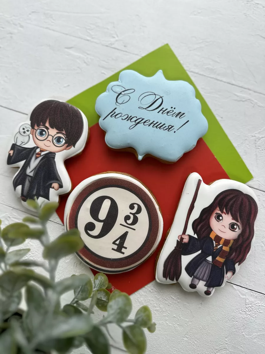 Набор съедобных украшений на торт из четырех пряников в форме Гарри Поттера, Гермионы и платформы Девять и три четверти на палочке, сделанных только из натуральных ингредиентов, точно понравится вашему ребенку и останется в его памяти на долгие годы. Пряники из нашего комплекта помогут сделать День рождения девочки и мальчика особенным и запоминающимся, каждый из них - это вкусное